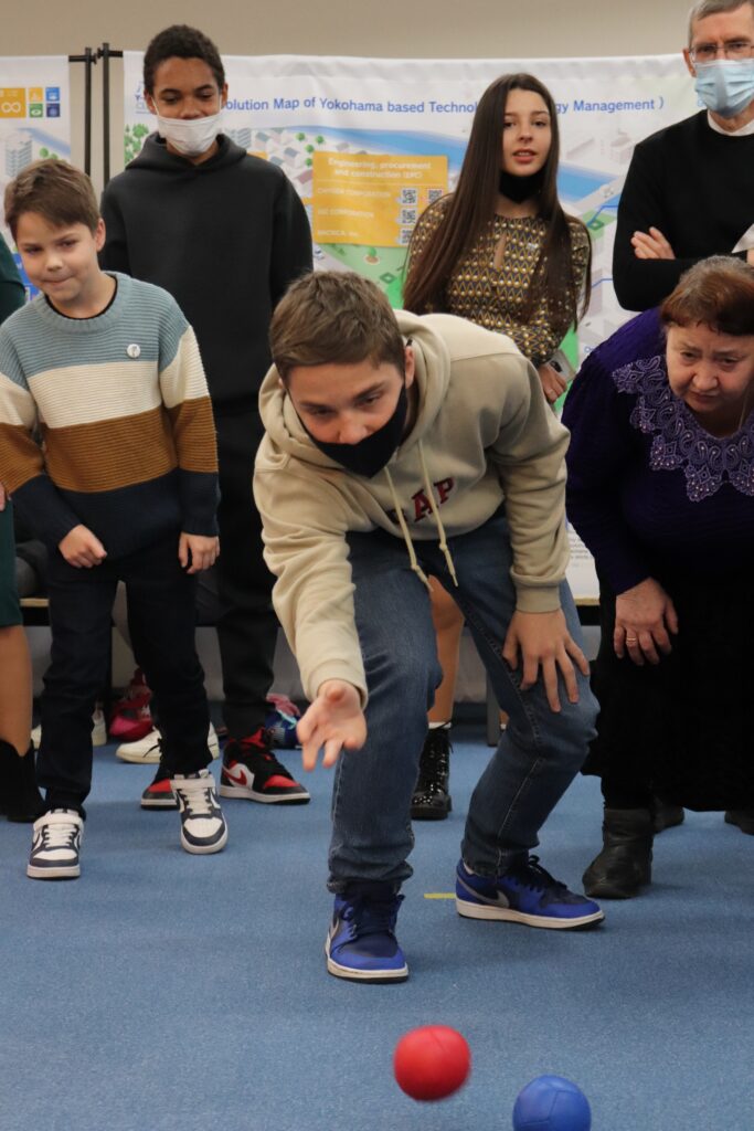 今回のイベントは一般社団法人VAMOS TOGETHER(代表アレックス・ラミレス氏)と連携して行われました。国籍や障害の有無に関わらず誰でも楽しめるインクルーシブスポーツのうち、ボッチャとモルックを体験して、大いに盛り上がりました。会の最後には参加者はサンタクロースから素敵なプレゼントももらって大満足の様子でした。